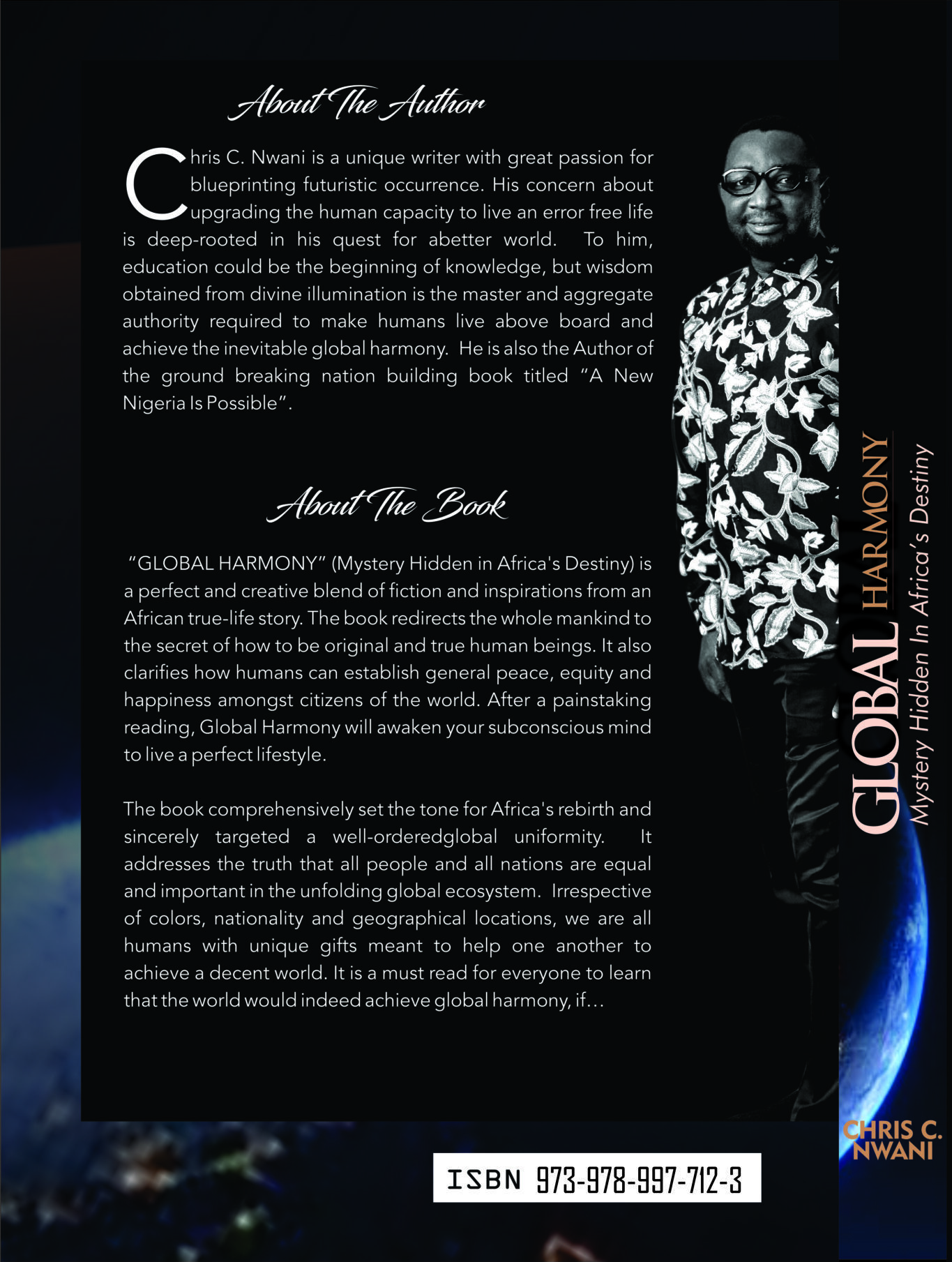 For this purpose, he wrote the book titled GLOBAL HARMONY, to reveal the secret of how citizens of the world can become “real human beings”, capable of restoring love, family ethics and even development, for the joy and happiness of the whole world. For him, he believes that every human challenge has a solution, if only people can answer these questions: “Why the problem?”, “What are the causes?” and “How to reach the desirable solutions?”. He believes that when human beings start providing answers to these three questions compassionately, every problem in the world will be amicably resolved and there will be unparalleled achievement of Global Harmony all over the world.